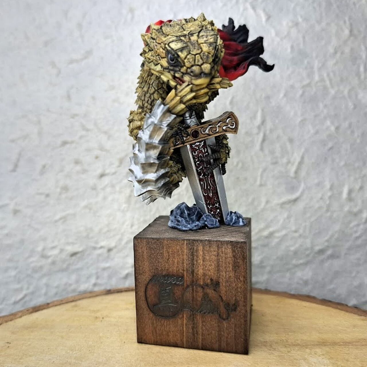 フィギュア自体はレジンキャストという合成樹脂、台座は木でできています。