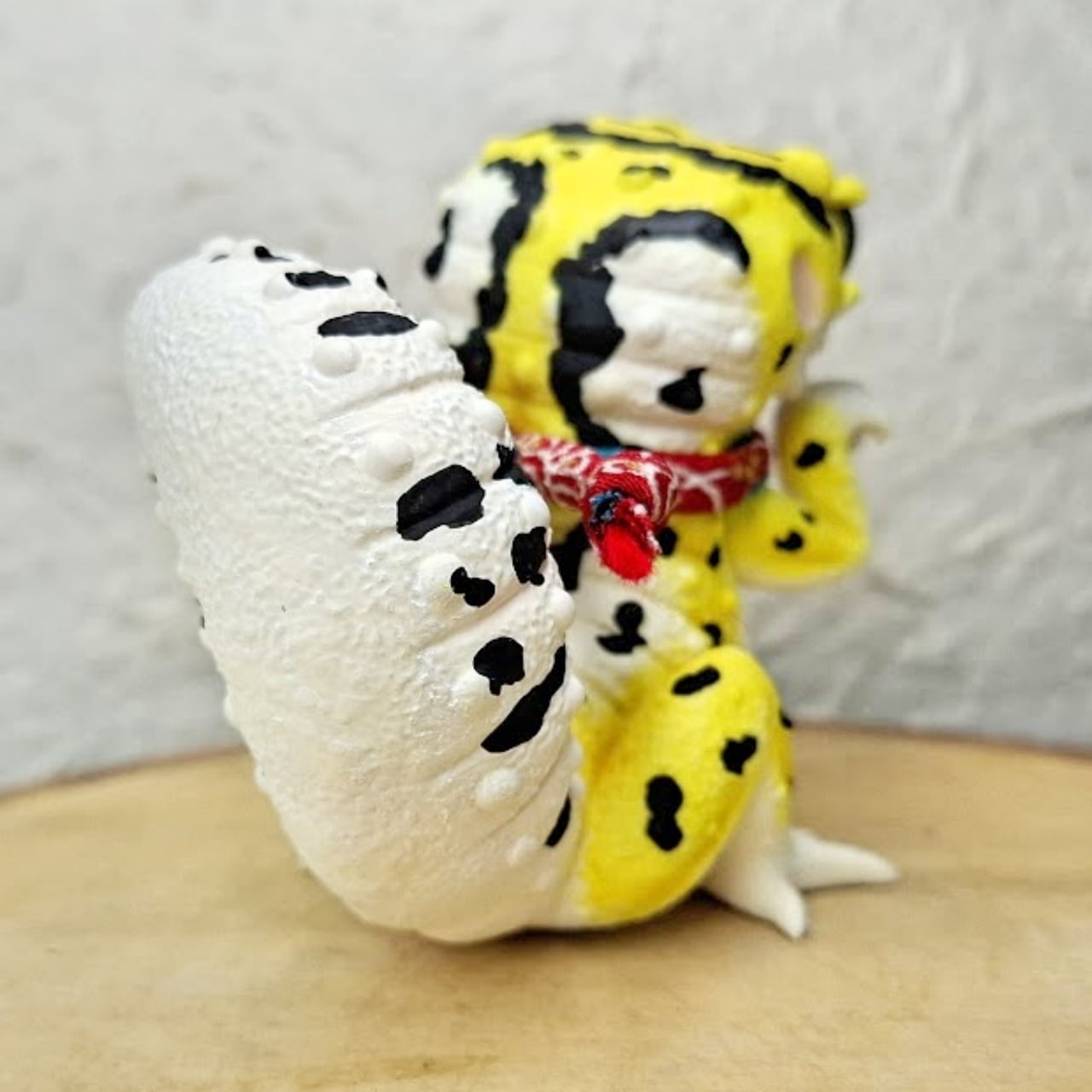 まねきねこを爬虫類モチーフにしたシリーズです。 レジンキャストという合成樹脂でできています。 塗装 :ラッカー塗料、エナメル塗料、油絵具 サイズ:高さ約8センチ