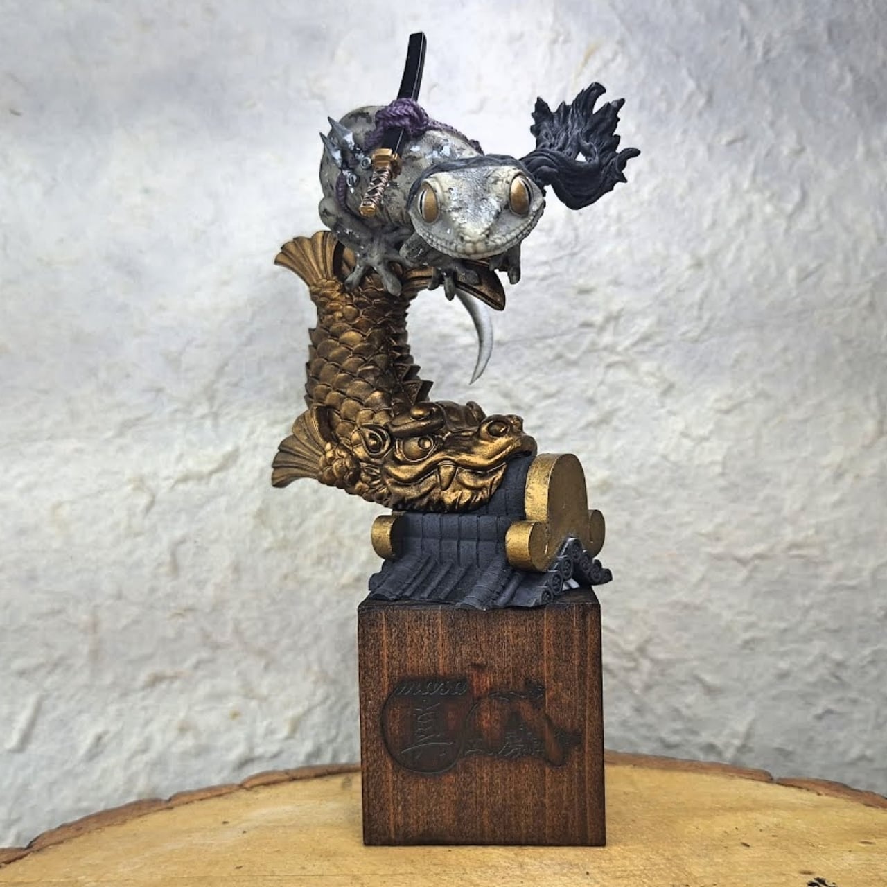 フィギュア自体はレジンキャストという合成樹脂、台座は木でできています。