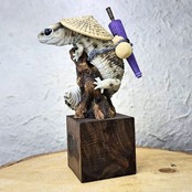 フィギュア自体はレジンキャストという合成樹脂、台座は木でできています。