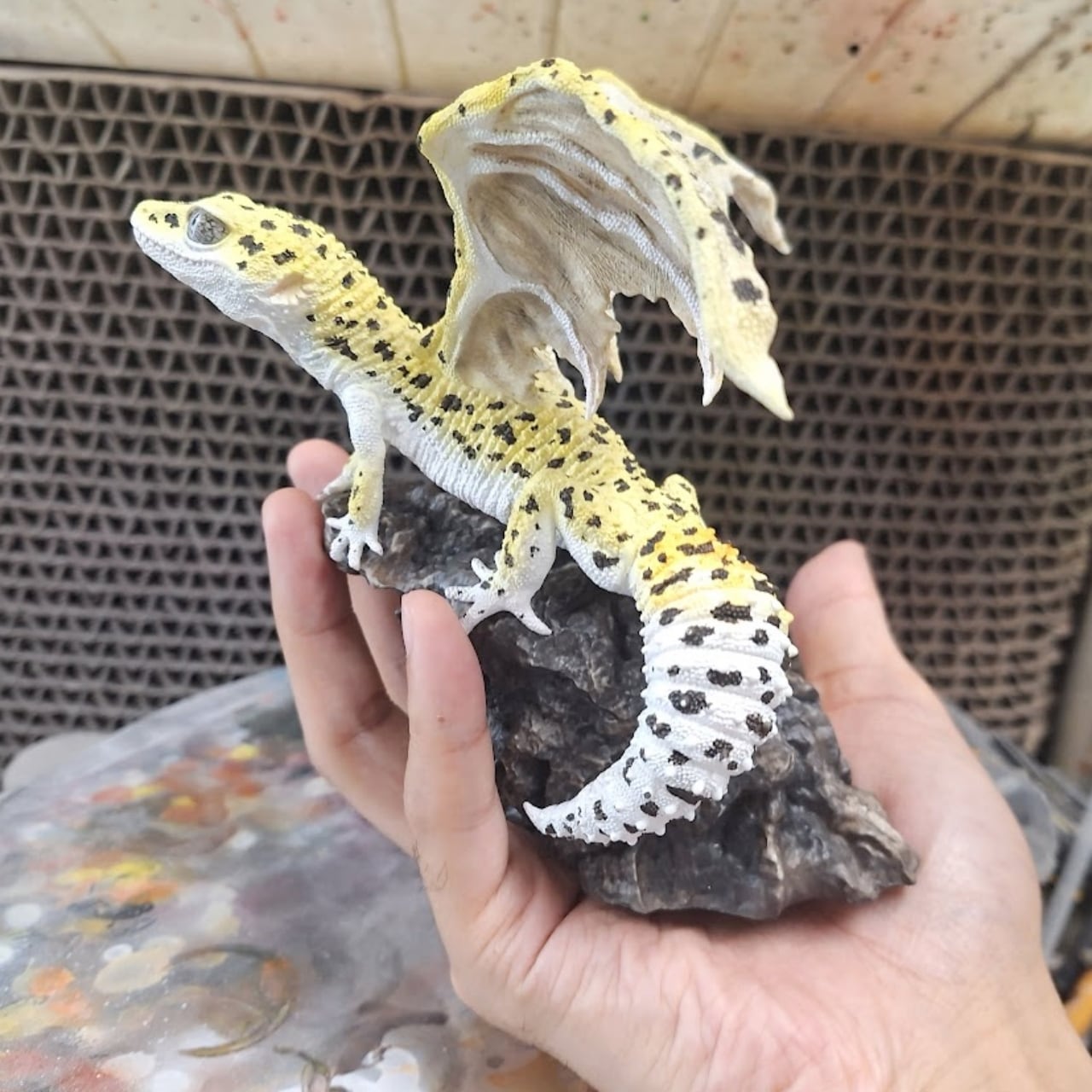 ヒョウモントカゲモドキ(レオパードゲッコー)をドラゴン化した作品です。