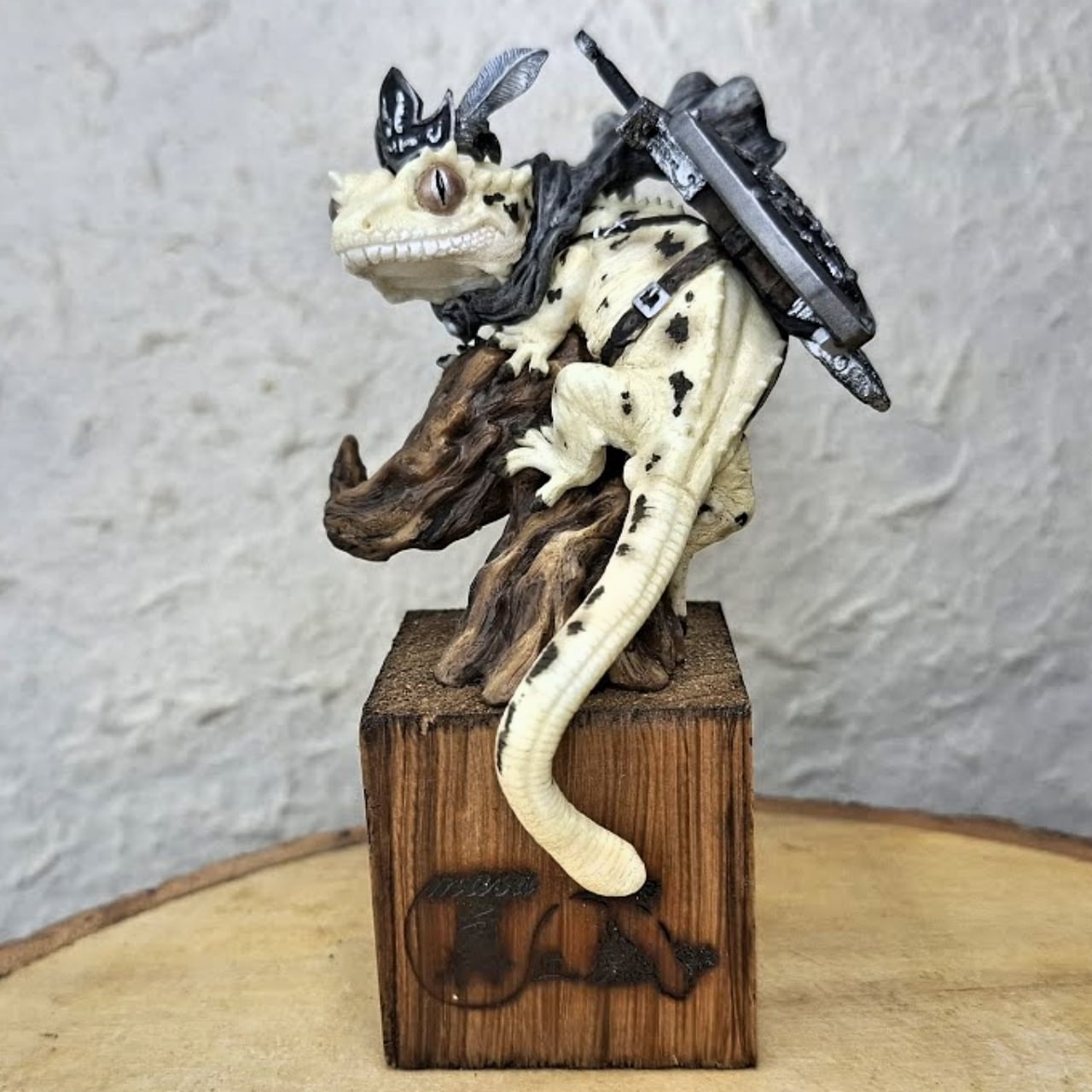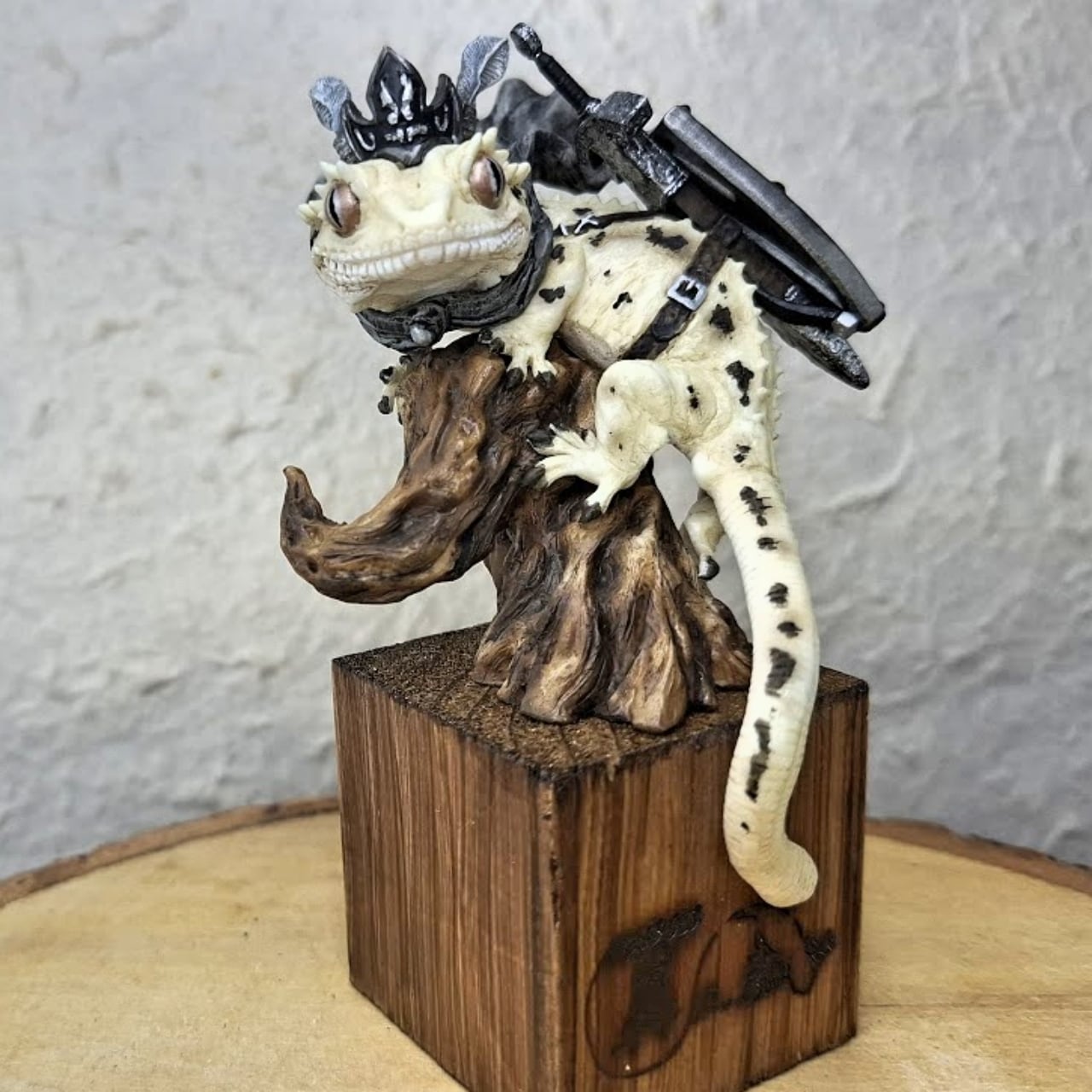 クレステッドゲッコー(オウカンミカドヤモリ)が勇者の格好をしたデフォルメフィギュアです。